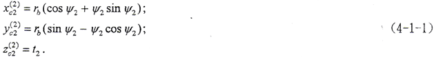 內(nèi)齒輪為直齒,其端面齒形及坐標(biāo)關(guān)系如圖3-3所示。設(shè)端面齒廓線為漸開(kāi)線,xc2坐標(biāo)通過(guò)漸開(kāi)線在基圓上的起點(diǎn),(o,xc2,yc2,zc2)坐標(biāo)下的齒面方程為