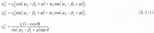 由第四章所給出的內(nèi)齒輪齒面方程(4-1-3)式及優(yōu)化鼓度曲線的鼓形外齒輪齒面方程,運(yùn)用非共軛鼓形齒聯(lián)軸器運(yùn)動(dòng)分析方法,可進(jìn)行運(yùn)動(dòng)分析。將式(5-1-3)的δ代入(5-1-2)式的β1中,可得優(yōu)化鼓度曲線鼓形齒輪齒面方程為