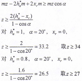 若采用正變位齒輪,其齒數(shù)可小于上述值。