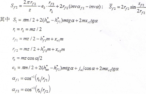 對(duì)于z≥2(ha*+c*)/(1-cosα)的外齒輪齒根圓弦齒厚f1可近似用下式計(jì)算[121]