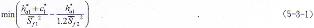 由目標(biāo)函數(shù)(5-3-1)式及約束條件(5-3-2)式便構(gòu)成本問題的優(yōu)化數(shù)學(xué)模型。通過對(duì)優(yōu)化數(shù)學(xué)模型的求解,可以計(jì)算出不同齒模數(shù)及相應(yīng)的鼓度半徑下的優(yōu)化齒頂高系數(shù)值。表5-2給出了幾種不同輸入?yún)?shù)下的求解值,從表中數(shù)據(jù)可以看出,不同齒數(shù)及鼓度半徑,其優(yōu)化齒頂高系數(shù)不同,但都不超過0.7?紤]到齒頂高系數(shù)的統(tǒng)一,建議采用齒頂高系數(shù)為0.7是適宜的。值得指出的是,這種齒頂高系數(shù)的齒輪是采用標(biāo)準(zhǔn)齒頂高系數(shù)滾刀和插齒刀用特殊方法進(jìn)行加工的。