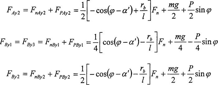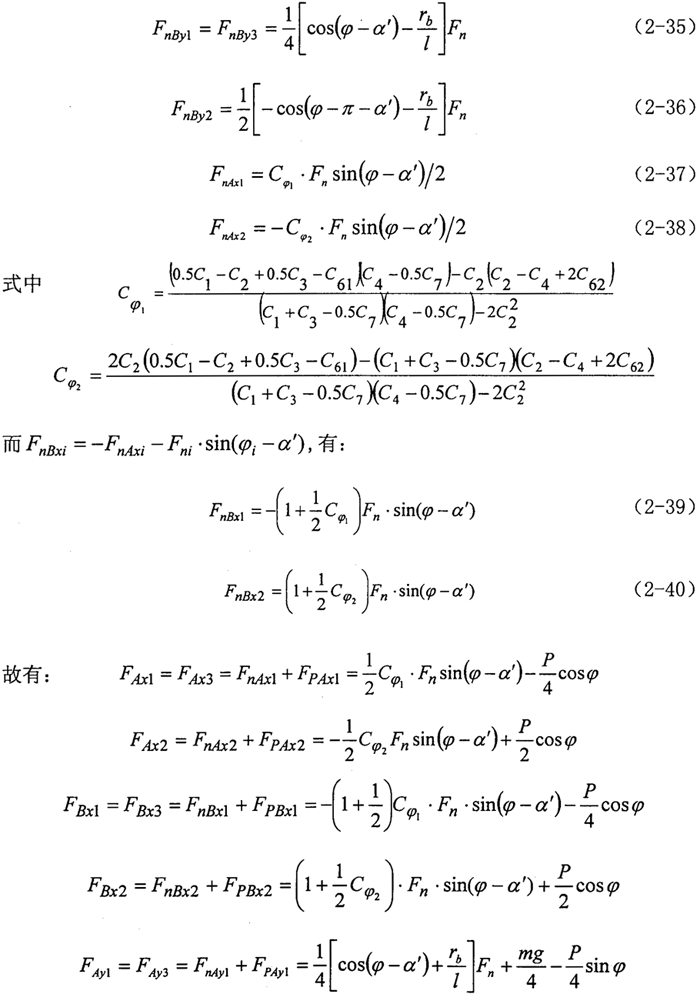 2.曲柄軸支撐軸承的作用力分析 根據(jù)力學原理,對于輸入同可得到下列方程式: