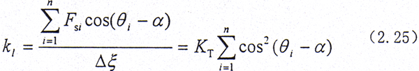 設(shè)在ξ方向給小位移△ξ,見圖2.6,則彈性位移為dsi=△ξ|cos(θi-α)|,產(chǎn)生的彈性力Fsi=KTdsi