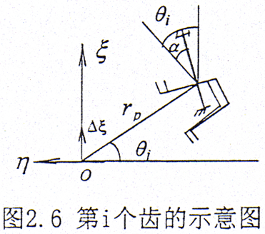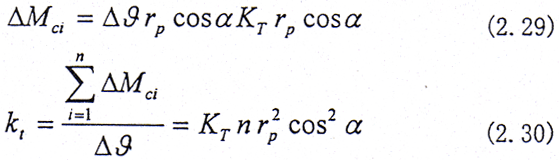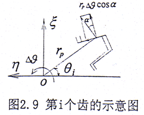 設(shè)繞z方向給一小扭轉(zhuǎn)角△θ,如圖2.9所示,則在第i對齒對上產(chǎn)生的扭矩為△Mci,設(shè)rp為節(jié)圓半徑。則有