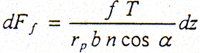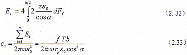 設(shè)內(nèi)、外齒輪軸線間有一相對轉(zhuǎn)角振幅ε0,如圖2.11所示,在齒z處dz上的摩擦力