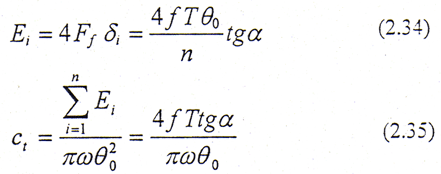 設(shè)內(nèi)、外齒輪有一相對扭轉(zhuǎn)振幅θ0,如圖2.12所示,則第i對齒面間相對滑動(dòng)位移為δi=rpθ0sinα。第i對齒對上的摩擦力消耗的能量為