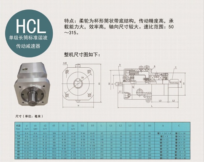 HCL型長筒單級諧波減速機(jī)/HCL-20-100-整機(jī) |