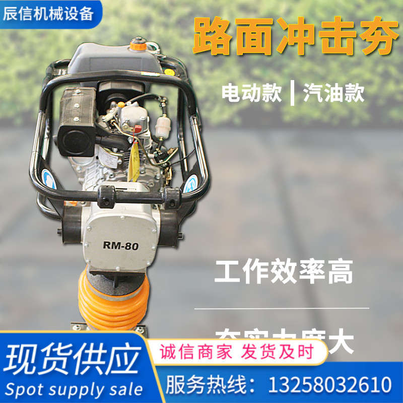 柴油汽油路面夯實機手扶沖擊夯 手持汽油土地壓實機 地基地面沖擊夯汽油沖擊立夯 建筑工程地基回填夯土機 HCR125全鋁機身立式打夯機 震動地坪立式打夯機
