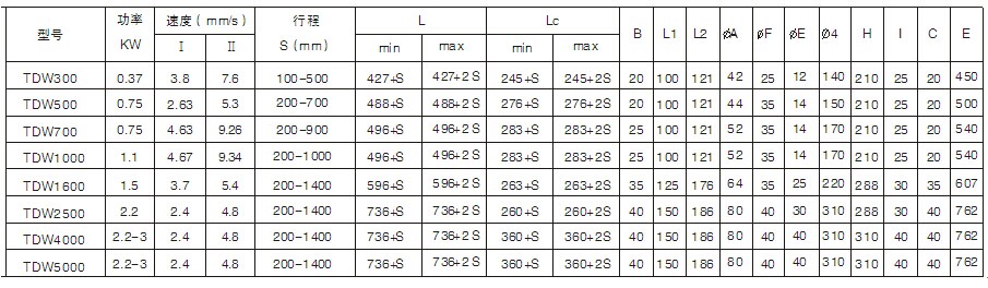DTW電動推桿參考選型 |