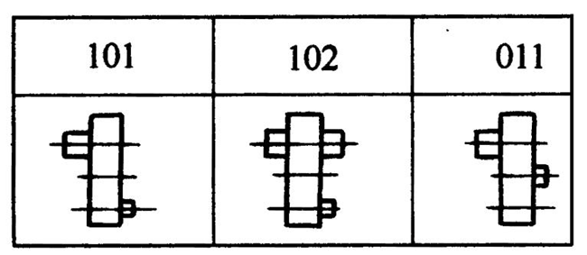 常用軸端型式,高速軸與低速軸同為圓柱形軸伸,或低速軸為套裝孔空心軸,均不附加標(biāo)號(hào)。當(dāng)非圓柱形軸端或高速軸與低速軸軸端型式不同時(shí),則分別依序加注軸端型式標(biāo)號(hào)。
