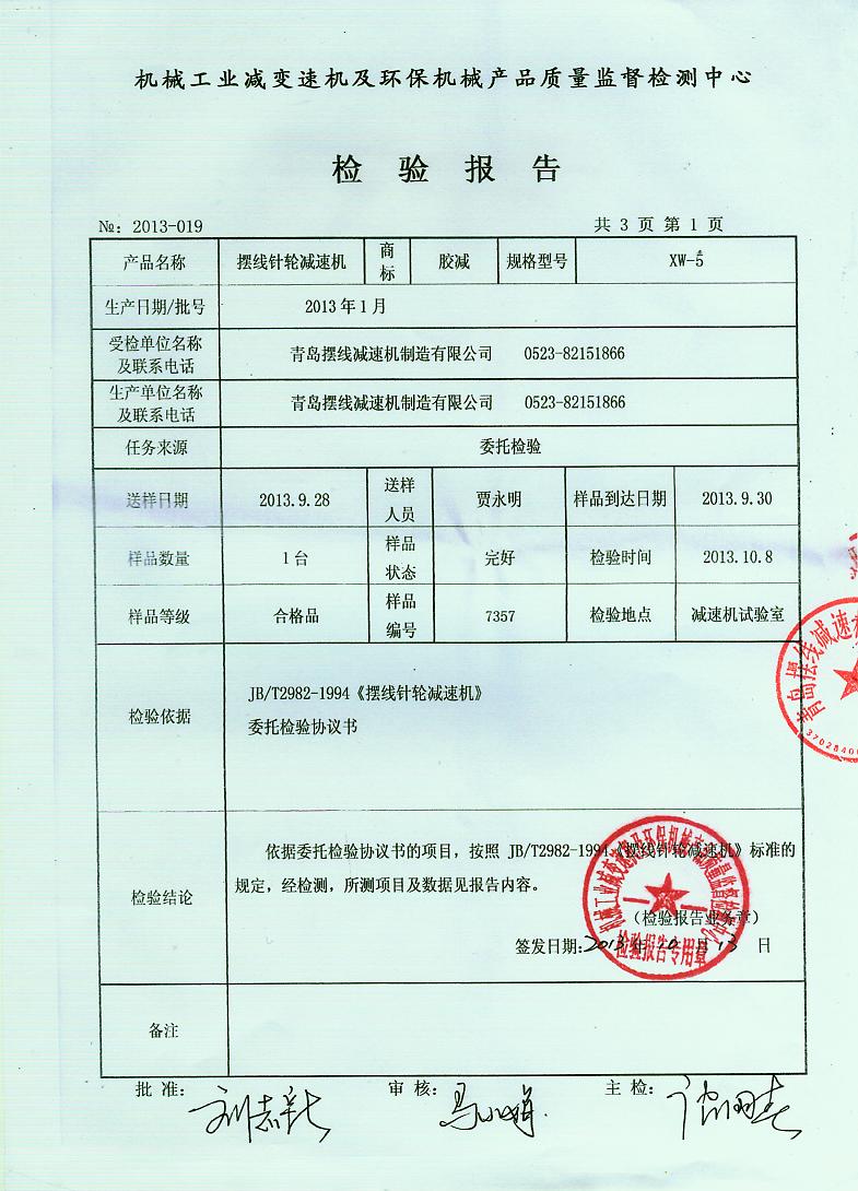 目前位置:中國減速機信息網(wǎng)首頁>>質(zhì)量檢測中心>>青島擺線減速機制造有限公司>>檢驗報告2檢測報告